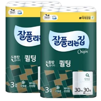 잘풀리는집 퀼팅 두루마리휴지 3겹화장지 30m 30롤 2팩