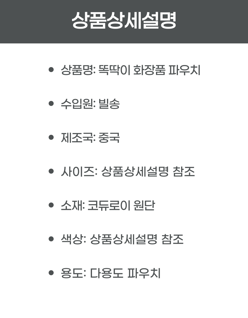 똑딱이 다용도 심플 화장품 파우치