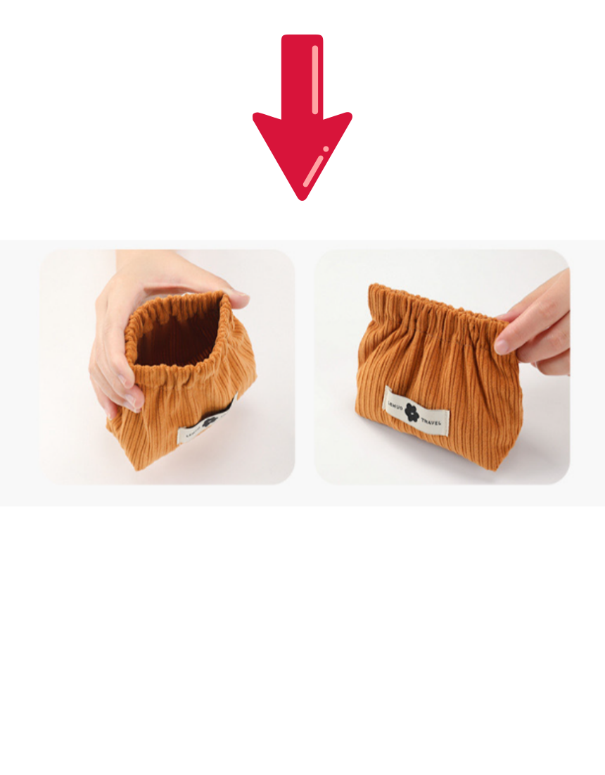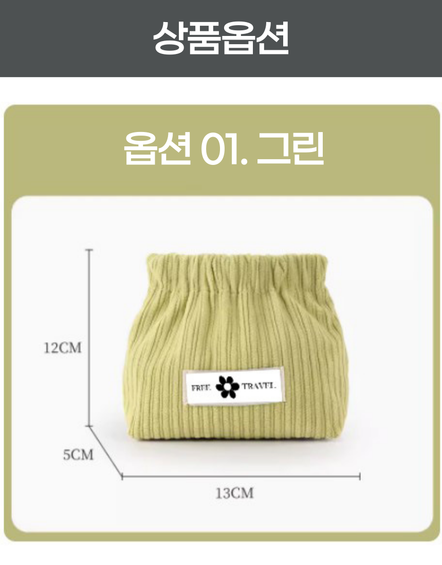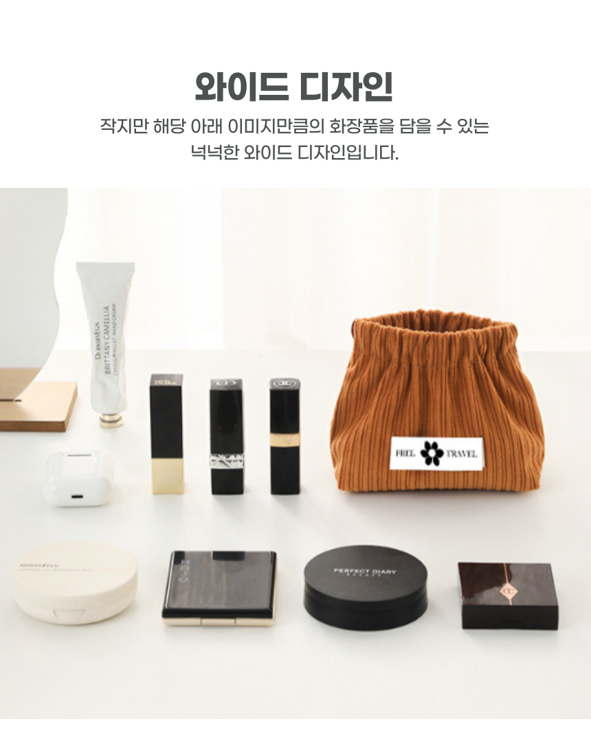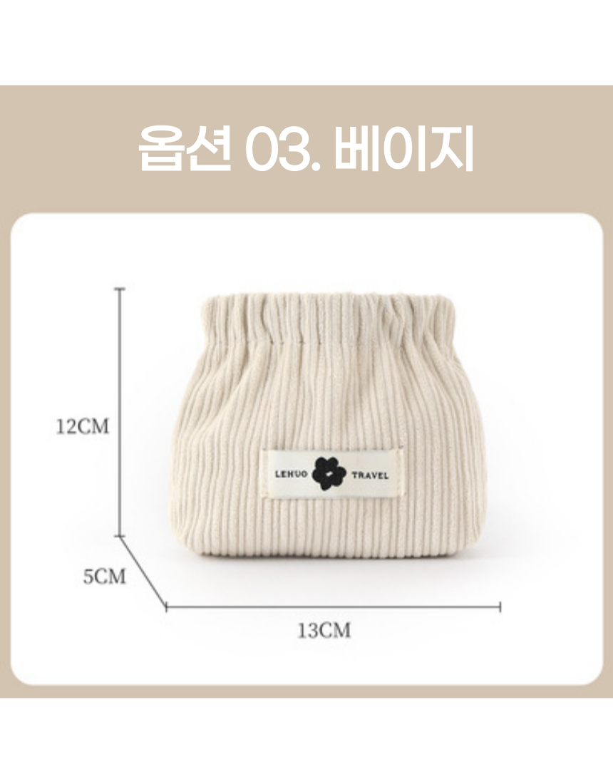 쉽게 열고 닫을 수 있는 똑딱이 디자인, 튼튼한 코듀로이 원단 소재의 파우치