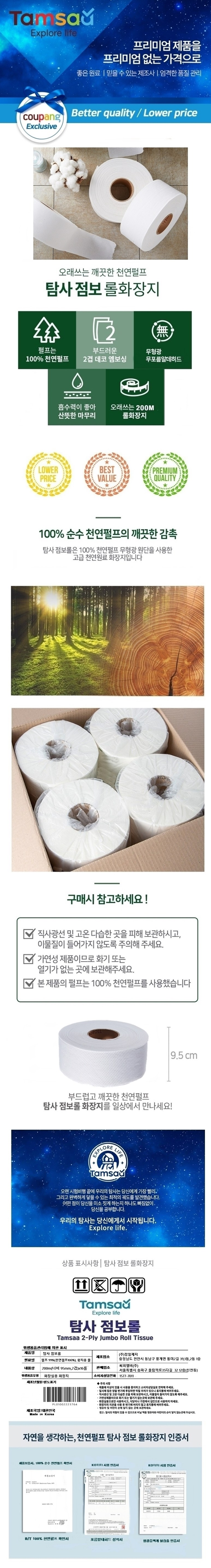 천연펄프 점보롤 200m, 16롤, 2팩