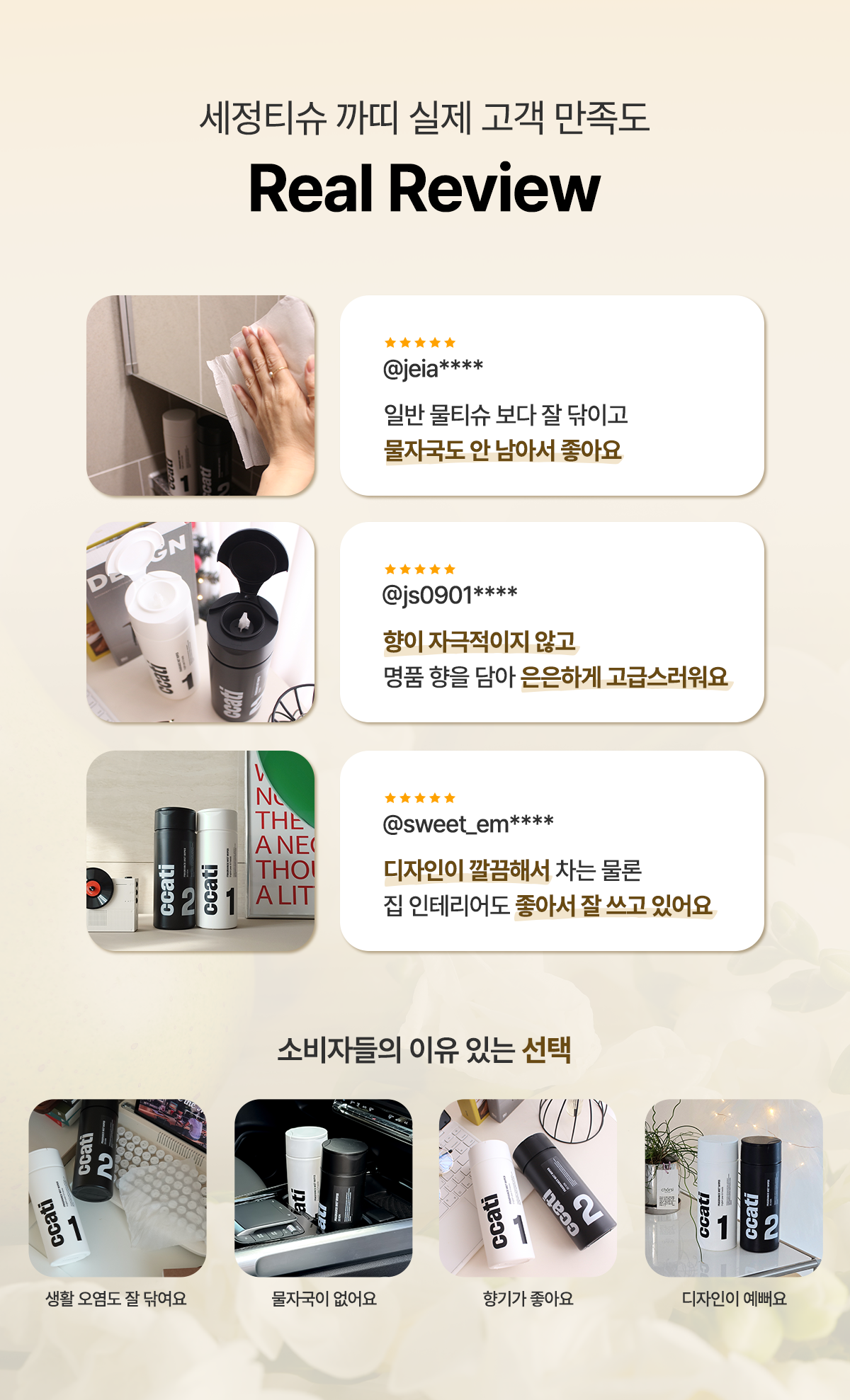 명품 향기를 담은 세정티슈로 차량, 주방, 욕실, 전자기기 등 사용