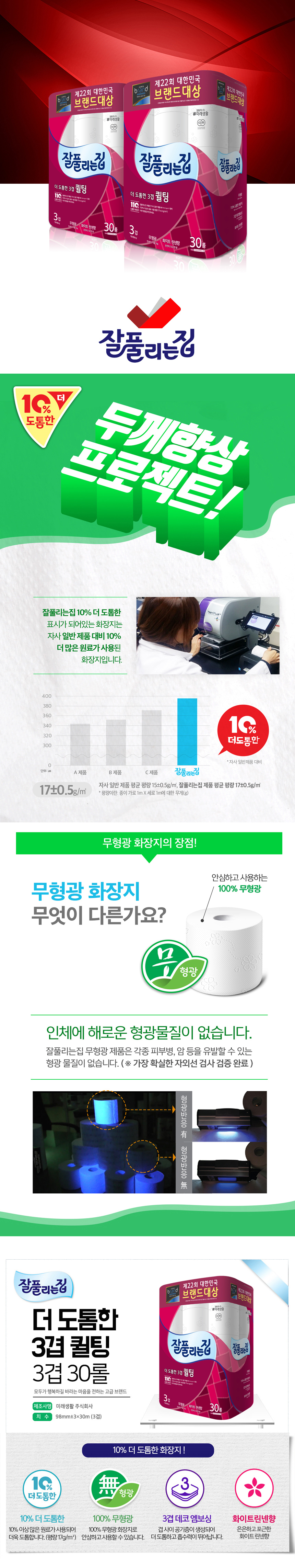 잘풀리는집 퀼팅 두루마리휴지 3겹화장지 30m 30롤 2팩